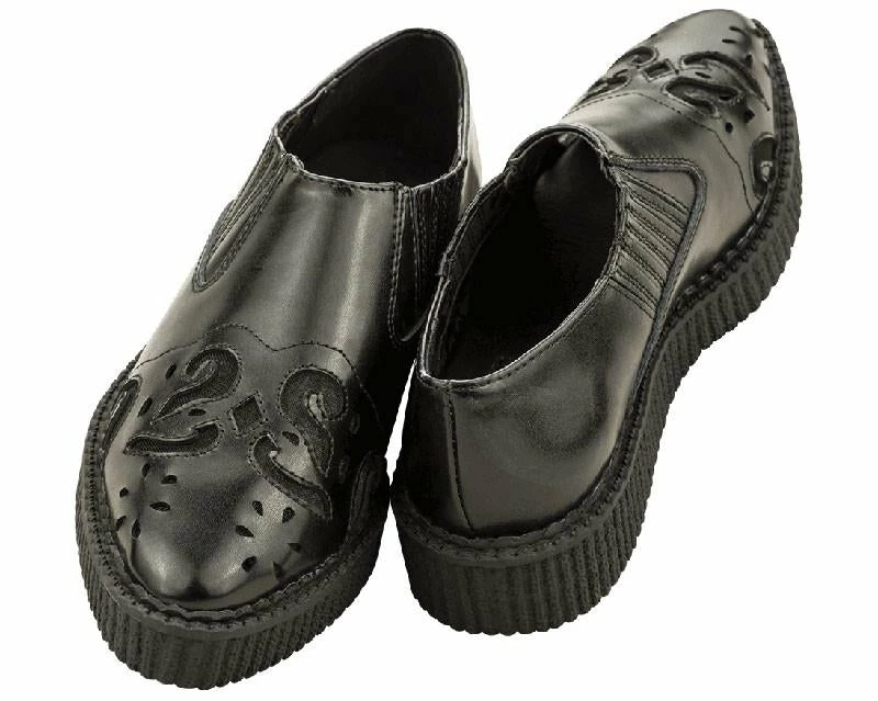 You want a dress shoe that doesnβt cramp your style! The new T.U.K. Slip on dress shoe creepers are your answer! These classically designed shoes combine sophistication and punk in a unique dress shoe thatβs never been seen before! This shoes sole measures 1`.25β at the heel and .75β at the toe. Available in Menβs sizes 3-12.