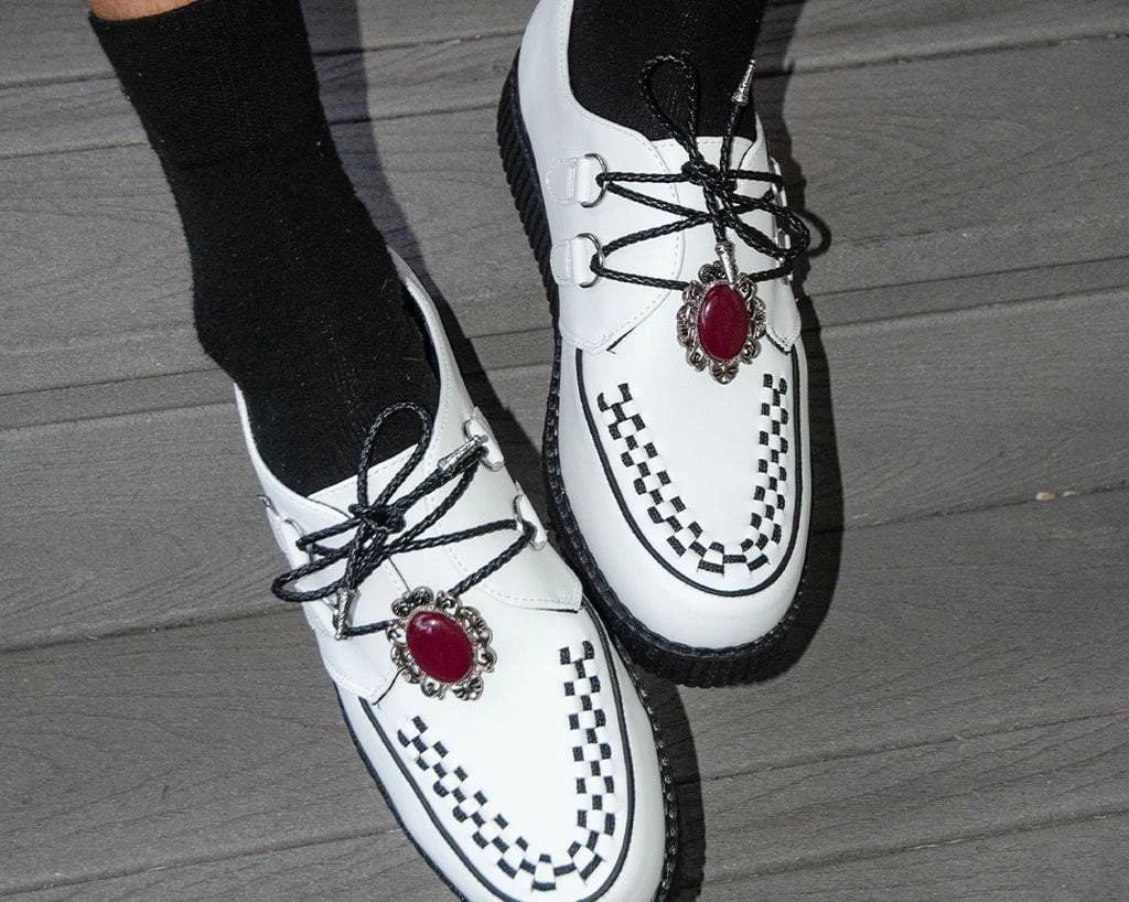 Add some extra class to your everyday style.ย Features aย burgundyย Victorian pendant.ย Laces measure 33 Inches long and can only be used for 2 D-Ring Creepers & VLK Creeper Sneakers.ย