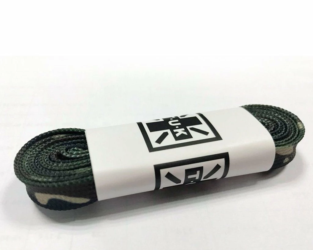 Lace it up your way! Customize your footwear with these nylon camouflage flat shoe laces that measures 75 cm long and 3/8โ wide (9 mm). These laces are the ideal length for two D-ring eyelet creepers & D-ring VLK creeper sneakers.