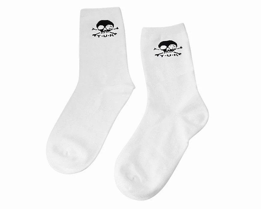 The perfect solemate to your fave pair of creepers. A classic white crew sock featuring our iconic T.U.K. black skull logo on the sides.