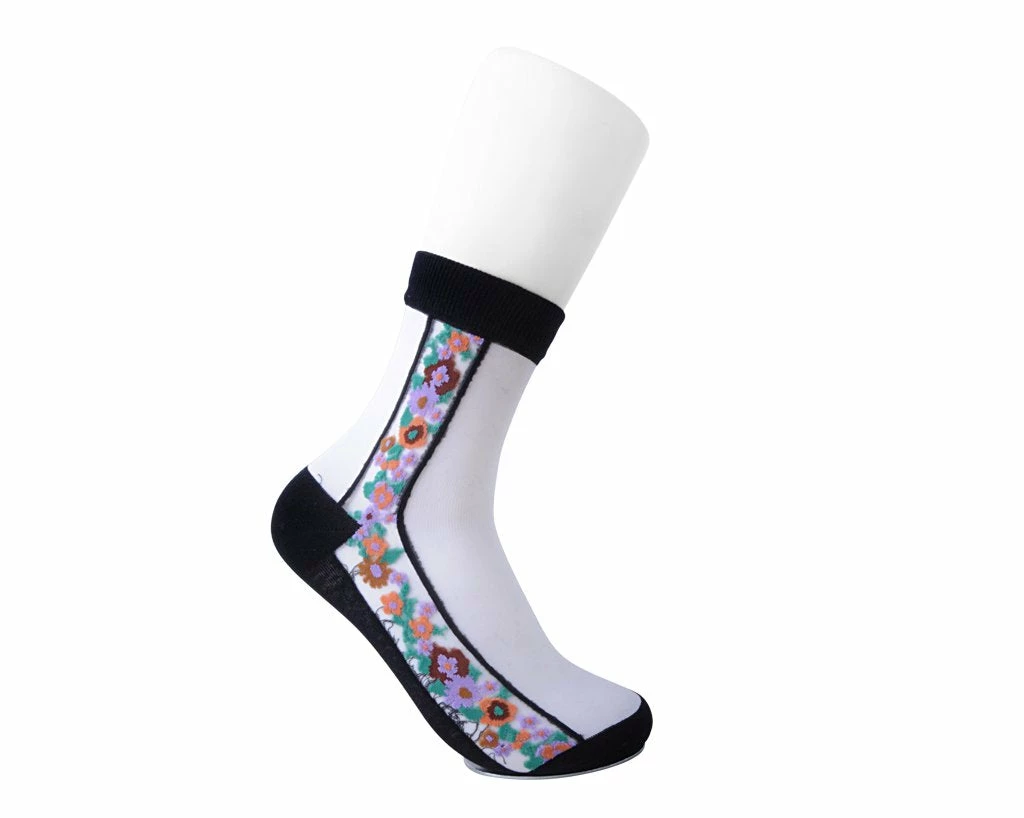 Stop and smell the flowers in these sheer floral socks. Lined from toe to heel.