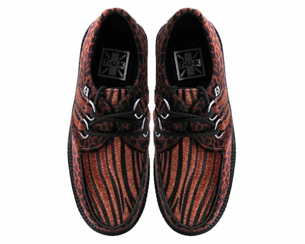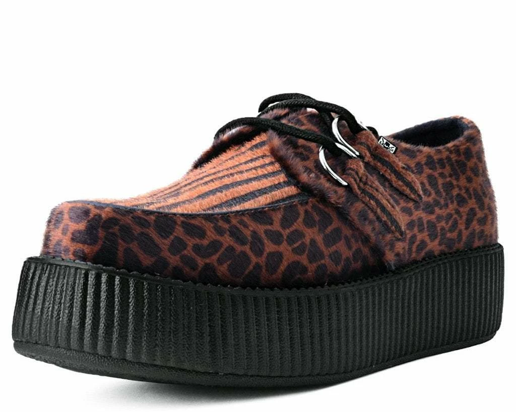 Tune into your wild side with these fun creepers. Features a brown mixed faux animal hair upper on our lightweight VIVA mondo sole that has a platform height approximately 1 ยพโ at the heel and 1 ยผโ in the front. Includes removable memory foam padding for extra comfort.